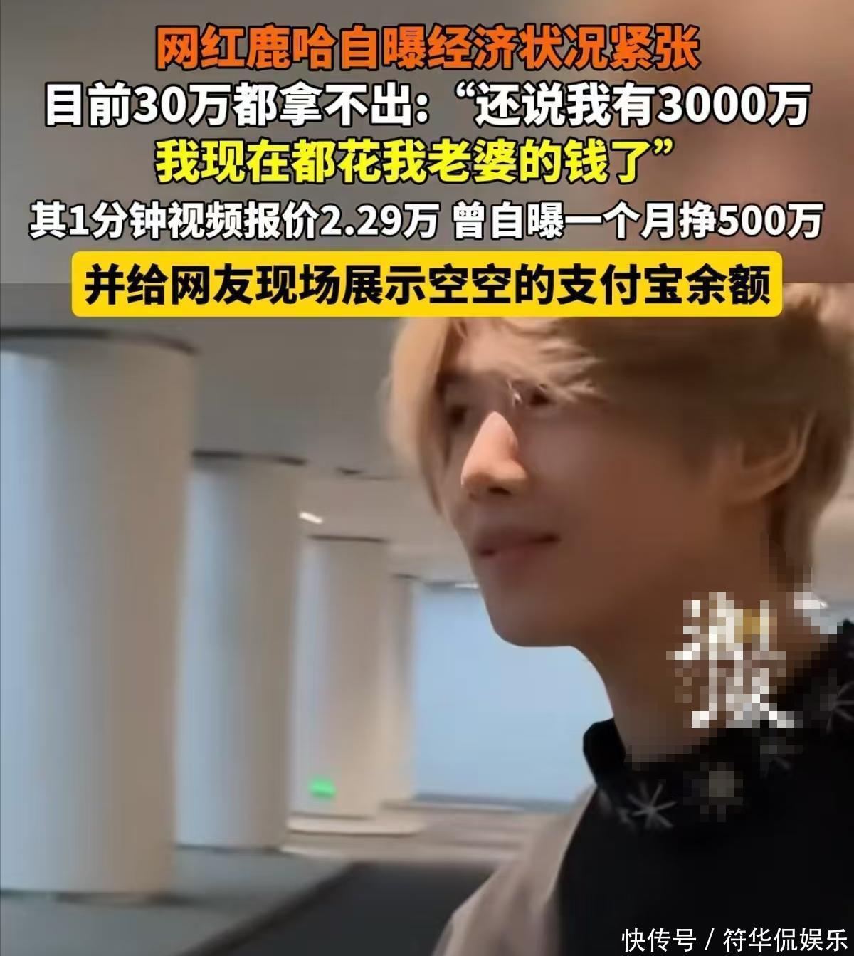 1月16日,鹿哈自曝经济紧张的词条上热搜后,大家才发现,这个网红原来还一直在网络上活跃着。当初他依靠着和鹿晗相似的一张脸,轻轻松松月入百万,那个时候的他是真的狂妄,买了房子和车子,